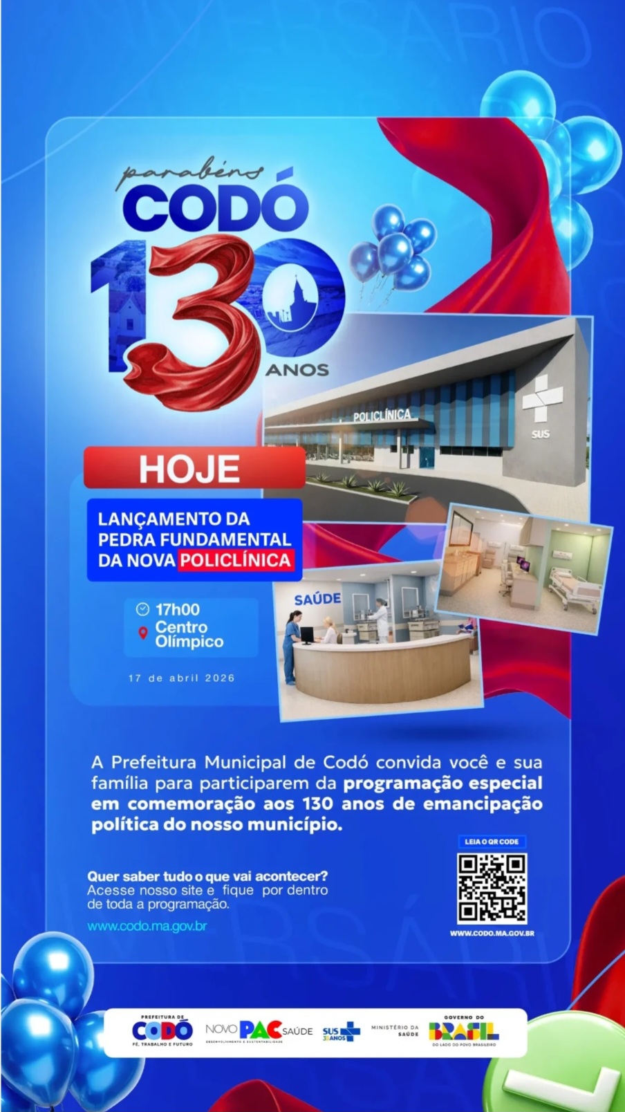 “Dia de muitas entregas e avanços nos 130 anos de Codó. Ao lado do prefeito Chiquinho FC e do deputado estadual Francisco Nagib, acompanhamos obras importantes e anunciamos novos investimentos e equipamentos para a cidade. São ações que estão transformando Codó e a vida das pessoas com trabalho, parceria e compromisso”, destacou Juscelino Filho.