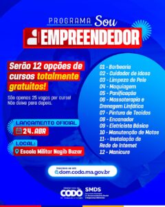 A Prefeitura de Codó, por meio da Secretaria Municipal de Desenvolvimento Social e Segurança Alimentar, realizará no próximo dia 24 de abril o lançamento do Programa “Sou Empreendedor”, uma iniciativa voltada à capacitação profissional e incentivo à geração de renda no município.