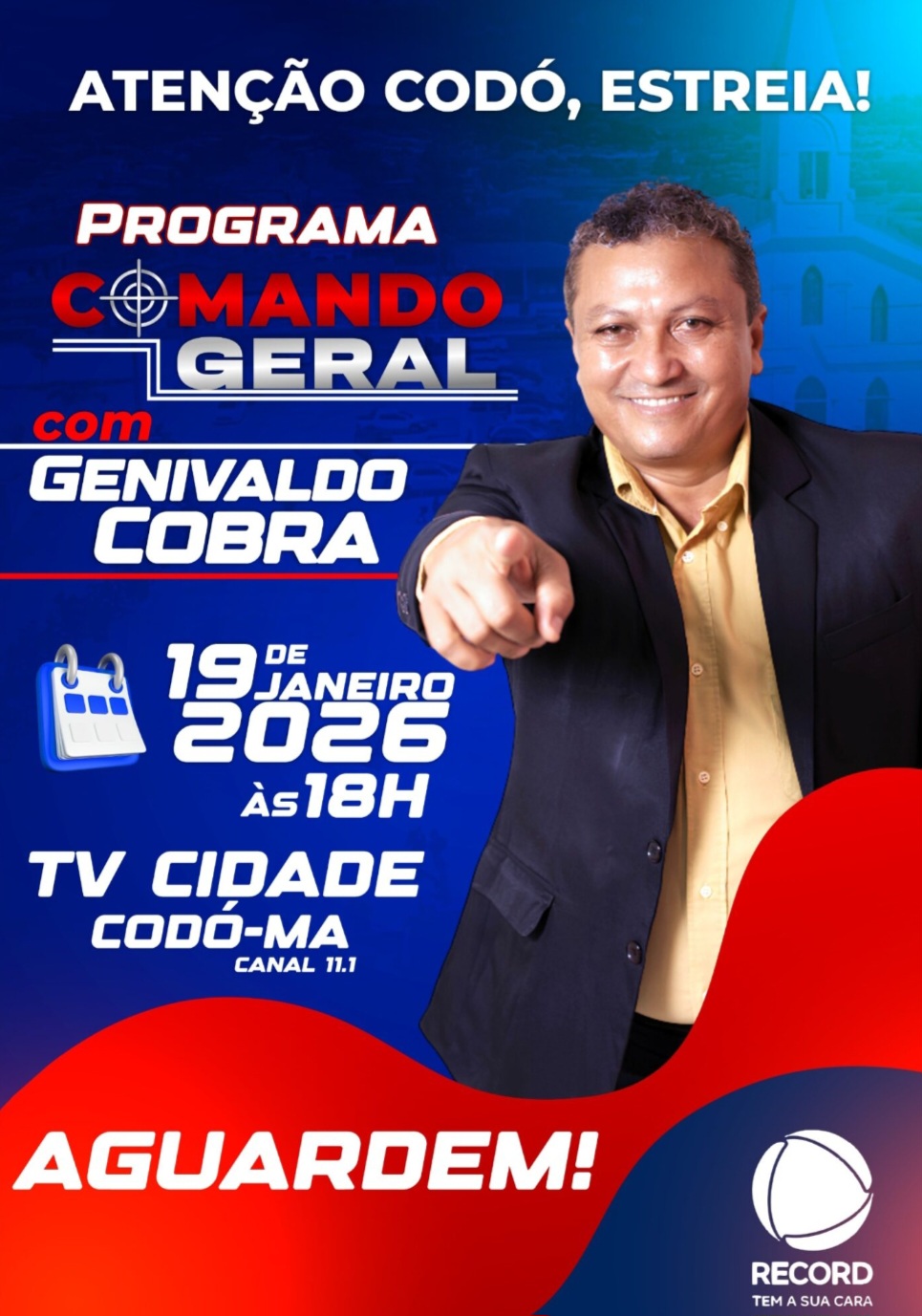 A programação da TV Cidade Codó (canal 11.1) ganha um reforço a partir do dia 19 de janeiro de 2026, com a estreia do Programa Comando Geral, apresentado pelo jornalista Genivaldo Cobra.
