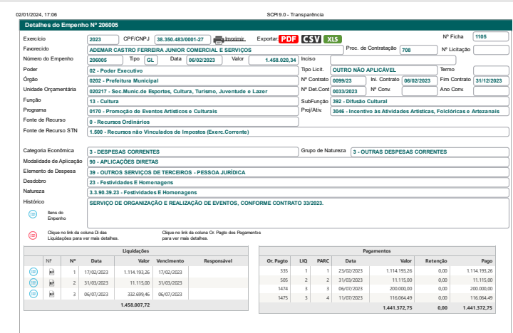 O site Luís Pablo constatou que em fevereiro de 2023 a Prefeitura também contratou uma empresa que tem como atividade principal instalação e manutenção de sistemas centrais de ar-condicionado para realizar eventos no município.
