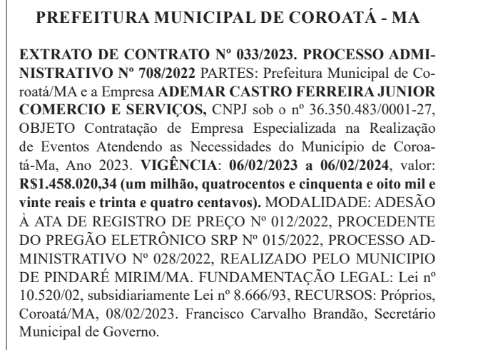 No dia 26 de dezembro de 2023, a Prefeitura de Coroatá firmou um contrato milionário com uma empresa de manutenção de ar-condicionado para organização de eventos no município (Reveja).