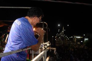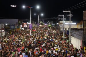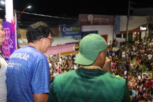 O prefeito Chiquinho FC (PT) participou da festa junto do público, reforçando o compromisso com a valorização cultural e a tradição carnavalesca do município.