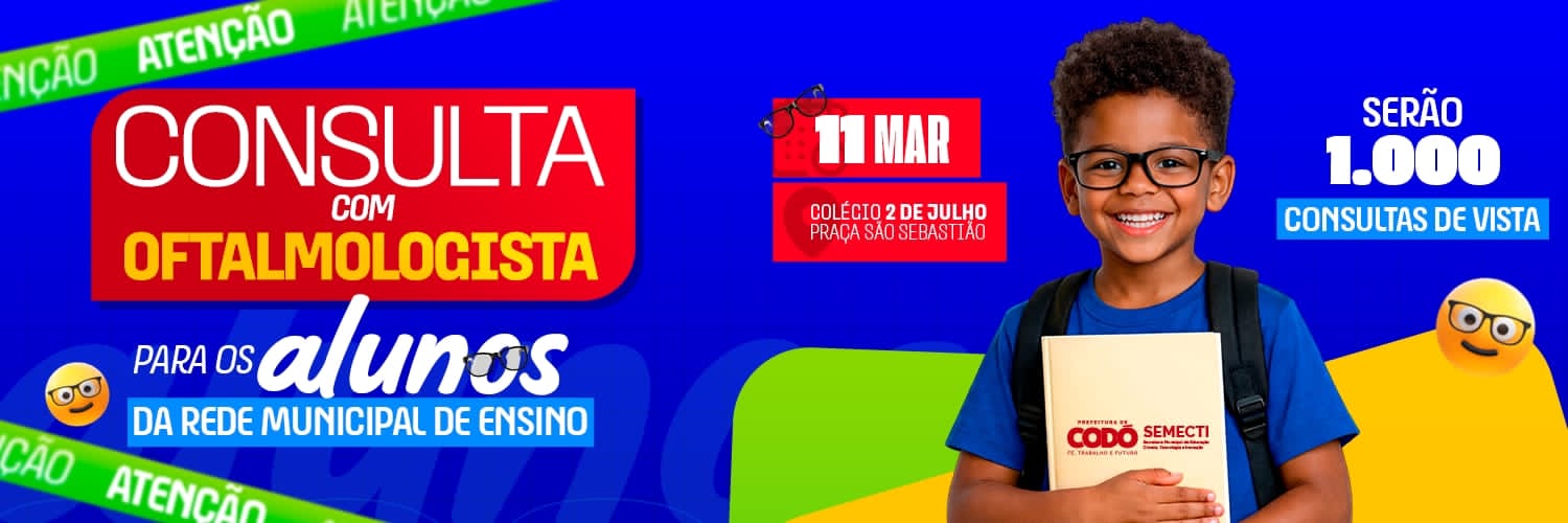 O Colégio Militar 2 de Julho será palco, nesta quarta-feira (11), de uma importante ação voltada à saúde visual dos estudantes da rede municipal de ensino de Codó. A iniciativa, promovida pela Prefeitura de Codó, por meio da Secretaria Municipal de Educação, Ciência, Tecnologia e Inovação (SEMECTI), terá início às 8h da manhã e oferecerá consultas oftalmológicas para alunos de diversas escolas do município.